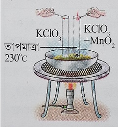 পরীক্ষাগারে পটাশিয়াম ক্লোরেট ( KClO3 ) থেকে অক্সিজেন প্রস্তুত করার সময় শুধুমাত্র KClO3 কে উত্তপ্ত করলে 650o C তাপমাত্রায় অক্সিজেন গ্যাস উৎপন্ন হয়। কিন্তু KClO3 এর সঙ্গে সামান্য পরিমানে MnO2 মিশিয়ে উত্তপ্ত করলে মাত্র 230o C তাপমাত্রায় অক্সিজেন গ্যাস উৎপন্ন হয়।এক্ষেত্রে MnO2 অনুঘটক হিসেবে কাজ করে।