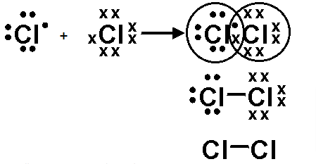 উঃ- লুইসের ধারনা অনুসারে ইলেকট্রনকে বিন্দুর সাহায্যে চিহ্নিত করে একটি সমযোজী বন্ধনের জন্য দুটি পরমানুর মধ্যে একজোড়া বিন্দু বসিয়ে সমযোজী যৌগের গঠন প্রকাশ করা হয়। নিচে ক্লোরিনের লুইস ডট গঠন দেখানো হল।