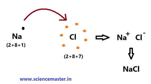 উঃ- সোডিয়াম পরমানুর (2+8+1) যোজ্যতা কক্ষের একটি ইলেকট্রন ক্লোরিন পরমানুর (2+7) যোজ্যতা কক্ষে স্থানান্তরিত হওয়ার ফলে সোডিয়াম Na+ আয়নে এবং ক্লোরিন Cl– আয়নে পরিণত হয়। উৎপন্ন ক্যাটায়ন ও অ্যানায়ন পরস্পর স্থির তাড়িতিক আকর্ষনে যুক্ত হয়ে NaCl যৌগ গঠিত হয়। অর্থাৎ NaCl যৌগ একটি তড়িৎযোজী যৌগ। Na-Cl তখনই লেখা হয় যখন যৌগ সমযোজী বন্ধন দ্বারা গঠিত হয়। তাই NaCl যৌগ কে Na-Cl হিসেবে লেখা হয় না।